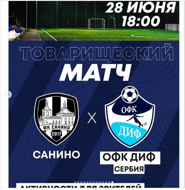 Na istorijski značajan dan za srpski narod – 28. jun, Vidovdan, u Vladimirskoj oblasti, u mestu Sanino, održana je nezaboravna prijateljska utakmica između domaćeg FK Sanino (Moskva, Rusija) i gostiju iz Srbije – OFK DIF (Kosovska Mitrovica).